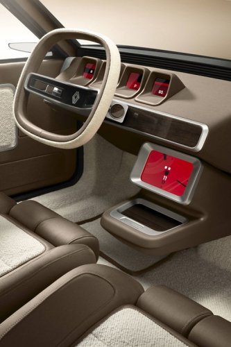 Surtout qu’Ora -l’auteur des bouteilles de Heineken en aluminium pour ceux qui ne l’auraient pas situé- s’est véritablement surpassé dans l’habitacle. A commencer par sa très belle interprétation de l’instrumentation du modèle d’origine en Phase 1, avant qu’elle ne soit remplacée par celle beaucoup plus banale chipée à la Renault 30. A l’instar des optiques, les quatre compteurs individuels à visière individuelle évidemment convertis au digital sont "rectangularisés", traitement géométrique également appliqué au volant façon quadrature du cercle, qu’un conducteur d’Austin Allegro ne renierait pas. Quant aux sièges pétales délicieusement réinterprétés dans une harmonie bi-matière et biton beige/marron très seventies, ils donnent immédiatement envie de s’y accommoder pour prendre la route. Impossible enfin de ne pas évoquer la dalle centrale dont l’entourage en alu satiné évoque avec humour les téléviseurs d’alors, écran bombé en moins.