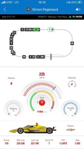 En tant que spectateur, celui ou celle qui vient équipé peut vivre la course au plus près. Personnellement, mon casque bluetooth m’a permis de suivre en direct la radio et les échanges entre les pilotes et les écuries. Sur mon smartphone, l’application me permettait d’afficher en temps réel le régime moteur, la position des pédales d’accélérateur et de frein, l’angle volant, le rapport engagé et la position sur l’ovale de 4 km. Les 800 km de courses sont avalés en moins de deux heures et demie. Le suspens dure jusqu’à la dernière seconde avec des changements de position incessants dans les 10 derniers tours. Castroneves et Palou (second) changeaient de position sans cesse jusque dans le dernier tour. L’Espagnol a été vaincu mais pas sans lutter. Le spectacle est fabuleux. J’étais placé en face des stands, l’autre place de choix est dans le premier virage.