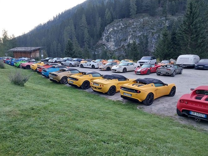 Cette SS38, Elisa ne l’avait évidemment pas choisie par hasard. Parce qu’elle passe en 14 kilomètres et 48 virages serrés des 1.543 m d’altitude du village de Trafoi aux 2.858 m du Col du Stelvio, les ingénieurs de Lotus l’avaient choisie pour tester les freins de la Lotus Elise quelques mois avant son lancement au Salon de Genève 1996. Elise, Elisa : point de coïncidence puisque Romano Artioli alors propriétaire de la marque avait décidé d’attribuer au modèle le prénom de sa petite-fille. (Une belle histoire que je vous ai racontée il a quelques temps dans La lettre d’Elise). Depuis devenue organisatrice de rassemblements automobiles, la jeune femme est venue avec ses deux Elise, une Série 1 offerte par son grand-père quand elle avait quatre ans, et "Sunshine", dernier exemplaire du modèle livré à client. Une Sport 240 couleur or ainsi nommée "parce que cette voiture a apporté du soleil dans ma vie" me glisse Elisa en interview.