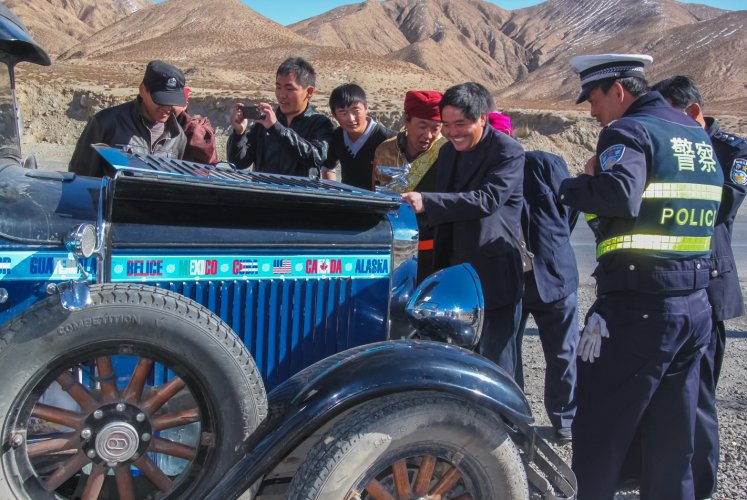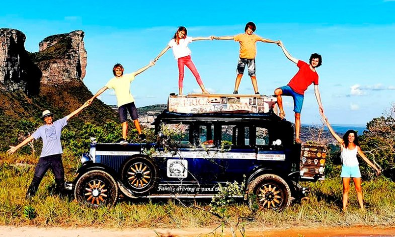 Contrairement aux gens de la pub, c’est en voiture qu’ils sont partis, au volant de Graham. Bon, le p’tit nom, c’est moi qui en ai décidé pour les besoins de la narration, puisque je n’en ai trouvé aucune trace dans leurs récits pour désigner la Graham Paige 610 Sedan de 1928 qui les a emmenés. Offerte par un généreux donateur en piteux état, cette représentante d’une marque américaine n’ayant vécu que de 1927 à 1940 constituait un choix pour le moins improbable en vue de faire le tour de la planète. La brave vétérane ne manquant d’ailleurs pas de tester la motivation des aventuriers trentenaires quand se rompit un rayon de l’une de ses belles roues en bois après seulement 50 km. Une anecdote qui les fait aujourd’hui sourire, eux qui ont depuis parcouru à son bord pas moins de 362.000 km à travers 102 pays, périple au cours duquel l’altière berline consomma huit jeux de pneus et subit deux opérations à culasse ouverte, alors que Candelaria et Hermann n’avaient pas la moindre notion de mécanique avant de partir. Au passage, elle se mua également en limousine quand il fallut la couper en deux pour la rallonger et adjoindre une banquette à l’arrivée du quatrième intégrant de la famille. Comme vous l’imaginez volontiers, il faudrait un livre pour raconter tout ce que la famille Zapp a vécu au long cours de ces années. Et ça tombe bien puisqu’il l’ont écrit : vous trouverez facilement sa version française intitulée "Attrape ton rêve" en googlant.