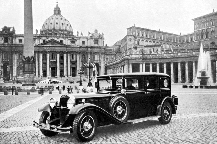 Voilà qui nous rappelle que les premières voitures livrées au Vatican furent elles aussi italiennes, même si l’Itala offerte en 1909 à Pie X par l’Archevêque de New York comme les Bianchi apportées en cadeau par son constructeur en 1922 puis 1926 restèrent désespérément cloitrées en raison du conflit opposant alors leur destinataire à l’Etat Italien depuis 1870. Les différents papes se succédant sur la période étant restés dans l’enceinte du Vatican dont ils se considéraient prisonniers, il fallu donc attendre la signature des accords du Latran en 1929 pour voir enfin l’un d’entre eux à bord d’une automobile, ce qui se produisit le 22 décembre de la même année quand Pie recouru à la combustion interieure pour effectuer les 8,5 km séparant sa résidence de la Basilique Saint Jean-de-Latran. Et c’est une Graham-Paige américaine qui s’y colla…