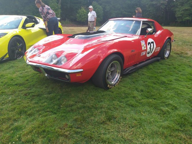 Les phones les plus smarts étaient donc de sortie pour photographier -entre autres- la toute récente Corvette C8 Z06 en "accelerate yellow" et sa devancière dans une rare version L88, une Ferrari SP2, la fameuse "flying Mustang" pilotée par Ken Miles en 1965 (la première des GT350 R vendue pas loin de 4 millions de dollars en 2020) ou encore une des quatre Porsche 906E 1967, sublime dans sa livrée orange.