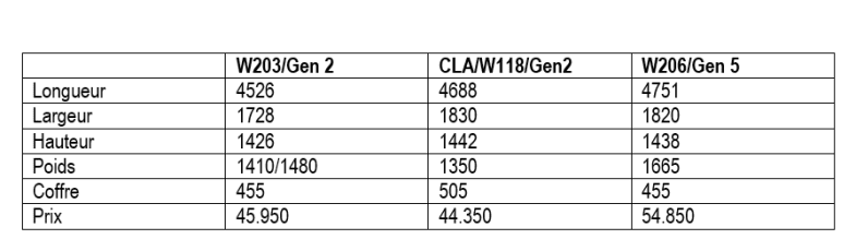 Je sais ce que vous allez me dire. Que l’ex-Chef de Produit a perdu la main, puisque la remplaçante de Karl est évidemment la W206, cinquième génération de la Classe C lancée en 2021. Mais ça, c’est parce que vous n’avez pas consulté les fiches techniques des différents modèles cités, qui vous auraient permis de constater qu’avec 225 mm de plus en longueur, la nouvelle Classe C joue désormais dans une autre catégorie que la W203, alors que la CLA en est plus proche avec ses 4.488 mm, même si elle la dépasse encore de 162 mm. Mais surtout, la W203 affichait à son lancement un tarif d’entrée proche en valeur constante des 45.000 euros demandés pour la CLA, alors qu’il faut désormais rallonger la mise de 10.000 euros pour repartir au volant de la W206. Bref, la CLA est bien le fils de Karl et je n’ai donc pas perdu les réflexes acquis dans l’exercice de mon ancienne profession.