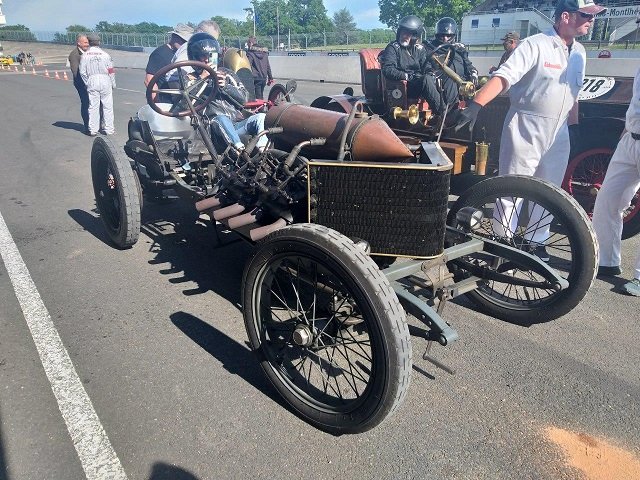Un truc construit il y a bientôt cent ans, où se trouvaient rassemblés d’hétéroclites véhicules à deux, quatre voire trois roues, à peine plus jeunes que l’endroit lui-même pour les plus récents d’entre eux. Des engins toussant, pétaradant, éructant même s’agissant des plus extrovertis, expulsant de tubulures d’échappement peintes à la suie d’odorantes et grasses arabesques de fumées. Aux commandes souvent inusuelles de ces créatures très mécaniques s’accrochaient de drôles d’individus dont il était parfois difficile de distinguer qui de l’un dominait l’autre ou inversement. Et pendant que ceux-là se baladaient en piste, ça saucissonnait dur dans les abris provisoires montés dans l’enceinte formée par la piste. C’était sur l’autodrome de Montlhéry et ça s’appelait le “Vintage Revival“, un évènement strictement réservé aux voitures automobiles et motocyclettes d’avant-guerre.