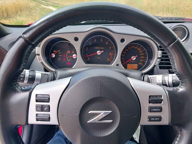 Il n’empêche, Michael Knight sourit sereinement au volant. Il y a 20 ans, j’étais sans doute frustré de retenir les 280 chevaux et 400 Mn de couple du VQ35DE de la phase 1 que j’avais alors eu entre les mains, alors qu’en deux-mille-vingt-trois, je savoure les 313 équidés aimablement fournis par le VQ35HR de la Phase 2. Ce qui ne m’empêche pas de profiter des sorties de péage ou de rond-point pour faire chanter une mécanique dont j’avais oublié l’appétence à prendre des tours à force de penser qu’une mécanique aussi opulente était forcément du genre coupleux à bas régime. La boite est certes un peu plus lente que les débattements courts du petit levier laissent à l’imaginer, mais qui a dit qu’on ne trouvait pas de plaisir à décomposer un mouvement qui se fait rare ? D’autant plus que je ne suis pas là pour "faire un temps", mais pour déguster les charmes d’une auto finalement plus GT que véritable sportive.