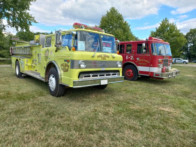 C’est au détour d’un coude de la rivière Cass qu’ils me sont soudainement apparus, stationnés par dizaines sur la berge gazonnée, profitant pour certains de la proximité du cours d’eau pour actionner joyeusement des lances à incendies sans doute rarement sollicitées. Le gars Google aussitôt actionné m’informa que grâce à Madame, j’étais tombé fortuitement sur l’édition 2022 de l’"Antique Fire Muster Frankenmuth", rassemblement de véhicules d’incendie organisé dans l’enceinte d’Heritage Park, sur lequel je demandai à ce que nous mettions le cap aussitôt débarqués. Quelques dizaines de commerces plus tard, ma requête fut accordée, me permettant de découvrir de près des engins pour la plupart rouges comme il se doit, estampillés Crosley, Dodge, Ford, GMC, International, Mack, Pierce Arrow, Seagrave, ou encore Studebaker.